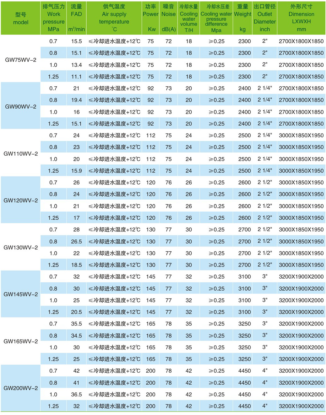上海格蘭克林集團(tuán)生產(chǎn)的GWV-2系列兩級壓縮節(jié)能型永磁變頻無油螺桿機(jī),二級壓縮的壓縮比一級壓縮的壓縮比低60%,壓縮比低,回流泄漏量大大的降低,螺桿主機(jī)輸出的流量得到提高。壓縮比低,壓縮過程產(chǎn)生的熱量減少,可以提升壓縮空氣的體積效率。